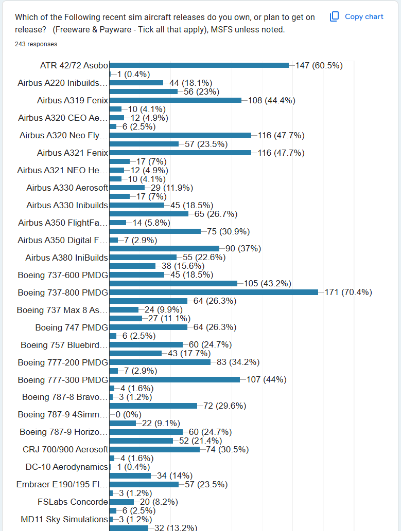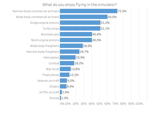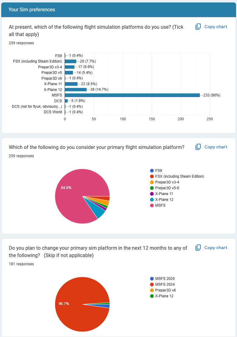 It's important to note that at the time of the survey, MSFS 2024 was not released; no doubt this will feature more in the next survey.