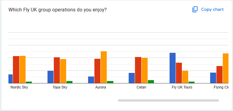 A new question for the last survey around callsigns, we've always historically used a blanket UKV/Skyways, but added CET/Cetan, so this was added to gauge member reaction. Whilst not a significant difference, there is some interest in unique identity across Fly UK operations, so it will be monitored in future.
