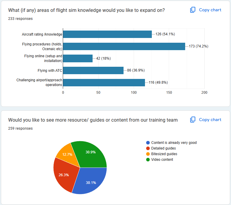Now we explore the Resource Centre and how our members seek knowledge in their sim flying. Its encouragin to see a good use of our resource centre guides for information,n but the bulk of members use YouTube guides to learn about sim flying techniques and procedures, something you would like to see more of from the VA.