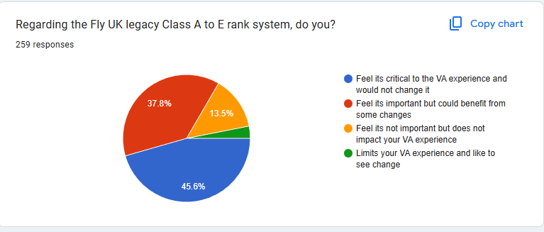 Finally, you feel our Fleet rank system is very important and integral to the VA, however many of you feel there could be some beneficial changes. Thanks for all the suggestions made in the free-text section. Only 3% felt the system limited their enjoyment of the VA